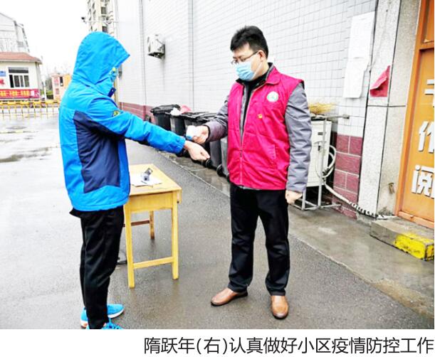 如何能够形成合力,既把值班工作做好,又方便群众进出呢?隋跃年想到了“联防联控”。很快,隋跃年向圣城街道党工委做了汇报,又跟小区所在的社区党委书记做了沟通。最后,在街道党工委的协调下,由圣达公馆出资购买了铁皮房,配置了必要的办公用品,同时,给值班党员配发了党徽,使不同单位的值班人员实现了统 一指挥,联防联控。