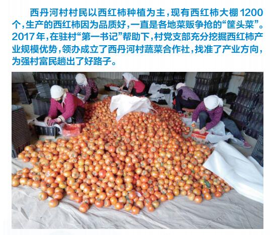 该村西红柿之所以不愁卖,得益于该村“报团”发展村党支部牵头成立的西丹河村蔬菜合作社。“我们村从 90 年代就开始种植西红柿,随着村内外来商客逐年增多,出现了管理混乱、商户欠账跑路、假药导致减产等问题,广大种植户深受其苦。为进一步发展壮大村集体经济,同时规范蔬菜销售,保护村民利益,村党支部决定顺势而为,创办西丹河村果蔬专业合作社。”该村党支部书记董国伟说,因过去村集体经济收入低,为解决资金不足的问题,村“两委”深入调研、广泛协商,探索采取“村集体+村干部+村民”三方入股的方式筹集建设资金。其中村集体投资80万元,村干部每人4万元,村民户均1000元,不足部分由村集体采取边建设边盈利投入的方式解决。