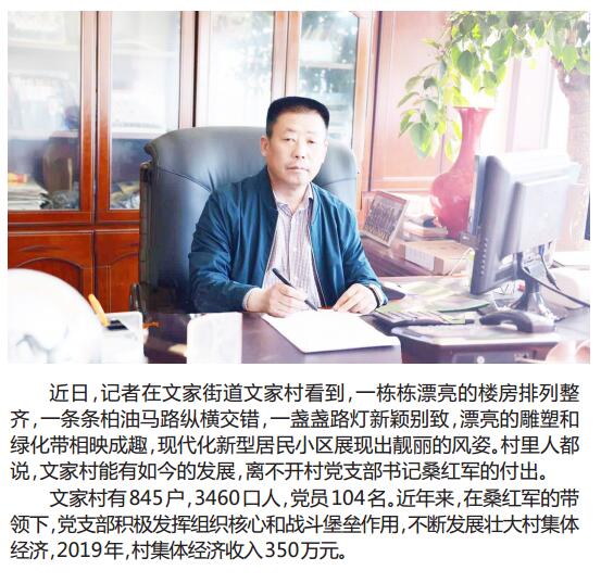 如今的文家村已逐步发展为一个经济发展、诚信文明、群众富裕的社会主义新农村,桑红军也成了群众信赖的“主心骨”,一心为民的好支书。寿光日报全媒体记者 郑小菲