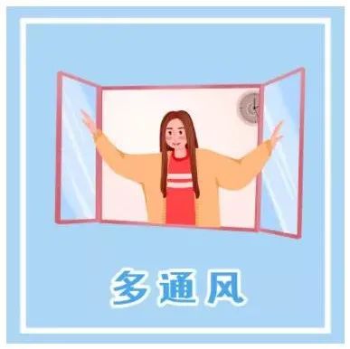 4. 确保有效通风换气。温度适宜时,尽量采用自然通风加强室内空气流通。如使用集中空调,应在开启前检查设备确保运行正常,确保新风取风口与排风口之间保持一定距离,对冷却塔等进行清洗,保持新风口清洁;运行过程中以最大新风量运行,加强对冷却水、冷凝水等卫生管理,定期对送风口等设备和部件进行清洗、消毒或更换。