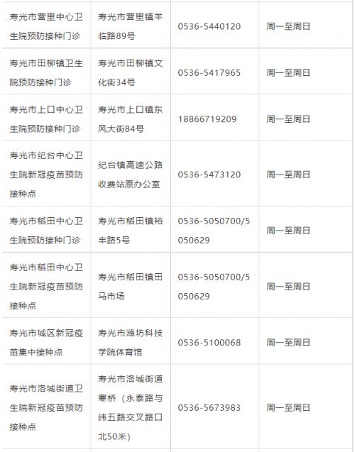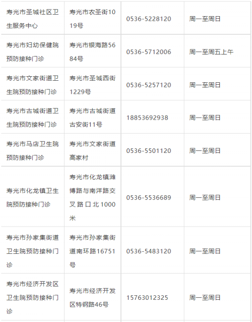 寿光市预防接种门诊信息