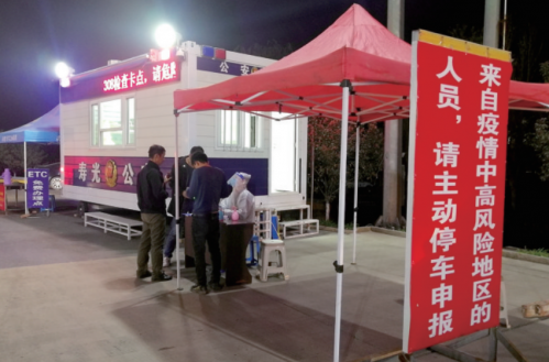 自疫情防控工作开展以来,寿光市各高速入口常态化设置了中高风险地区入寿返寿人员引导服务点。按照疫情防控部署,连日来,交通、公安、医护人员联防联控、连续作战,全天候轮流值班值守,对来寿所有车辆及人员实施疫情排查防控,严格做好查验健康码、查验行程码、检查体温、询问旅居史或有无去过风险区的“三查一问”工作,对每一辆途经或来自中高风险地区的车辆做到“逢车必检,每车必填”,坚决把好疫情防控“前哨”防线。