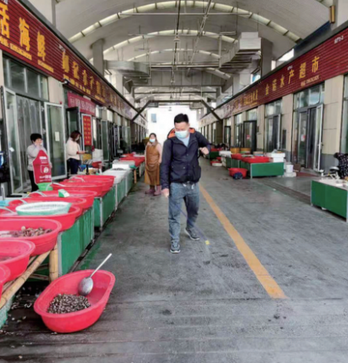 “我们24小时轮流值班,疫情防控事关大伙儿安全,马虎不得。”执勤人员表示,为做好疫情防控工作,市场从人、商品、环境等多方面入手,进一步强化疫情防控举措,并在显要位置张贴、放置防疫事项告知单;市场实行“西门口进,南门口出”管理方式,严格审查每天进出人员健康状况;每天按时对市场进行清扫、消毒,为市民提供安全、放心的采购环境,保障市民卫生健康和生命安全。