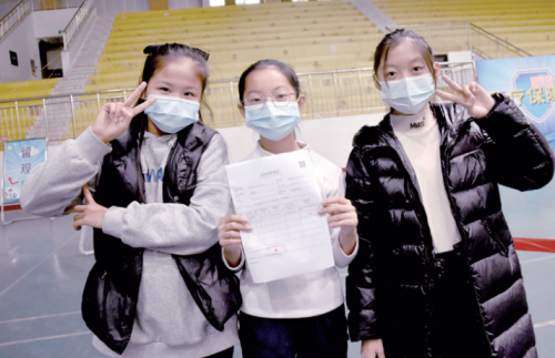 闫一冉的妈妈国文华非常支持孩子打疫苗,她说:“收到学校通知说今天接种新冠疫苗,我早上八点就带孩子过来排队了。”“有一点点疼,不过我们还挺兴奋,打了之后我们就不怕新冠病毒了。而且护士阿姨打针的时候特别好、特别温柔。”张秦、张紫涵、毛子凡在留观区告诉记者。