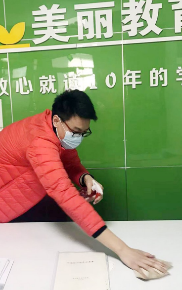 “我们校区聘请专业机构对教室、办公室、楼道、走廊、盥洗室等场所进行了全面细致地消毒,不留一个死角,并针对学生们经常触摸的桌椅、图书、教具及门把手等位置,进行着重清洁和消毒处理。对校区的空调网罩和内部进行高温清洗,对空调风口用酒精喷洒消毒,为师生营造安全舒适的教育教学环境。”该校区负责人董春涛介绍,在上级主管部门的指导下,学校制定了详细的疫情防控方案,成立了疫情防控工作小组,扎实做好日常检查和风险排查工作,严把师生入口关,坚持扫码、登记、测温、健康询问、佩戴口罩、洗手等基本防控措施,储备了足够的口罩、消毒液等防疫物品,要求全体教职工做到非必要不离开潍坊,将各项防控措施落实到位。
