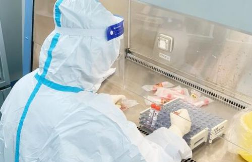 来到实验室后,实验室每名工作人员都要做好个人安全防护。三级防护必不可少,医用防护帽、医用口罩、防护服、鞋套、护目镜、双层手套、防护面屏穿戴好,除特殊情况外进入实验室后不准外出。拿到采集标本后,先进行消毒,再转运进实验室。