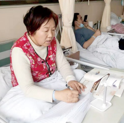 韩晓菲除了任教五年级语文课外,还担任着班主任。住院期间,韩晓菲每天要输液、理疗,即使这样,她还是抓住一切空隙时间来备课、上课、批改作业。为了保证孩子们的学习效果,韩晓菲有时靠在床上,有时从病床下来坐在床头柜旁边,尽量不让孩子们感受到环境的变化。病房里,韩晓菲充分规划着时间,争分夺秒,除了备课上课,她还要担负起班主任的职责,巡课、统计核酸检测结果、时不时给家长打电话沟通孩子在家的情况,确保每一个孩子不掉队。
