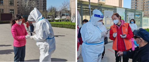 “小区疫情防控志愿服务的内容主要是维持秩序、协助老年人扫码登记,我们这几个人虽然年龄大点,但是对智能手机比较熟悉,所以就过来做志愿者,家里人也很支持。”带队的阿姨郝翠莲是盛和居小区党支部成员,也是一名热心公益的志愿者,看到社区招募志愿者的消息之后,和几个老伙计一起到社区报了名。