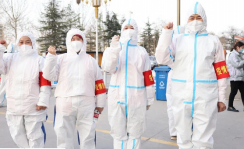 “请大家自觉遵守好3米间隔规定,提前把核酸检测的二维码截图找出来,检测速度很快,请不要着急。”日前,在圣城街道银海社区盛和居核酸采样点,一群“大白”特别引人注目。这支志愿者队伍,被小区居民亲切地称为“大姨天团”。她们都是小区的热心居民,其中郝翠莲67岁,吕新华68岁,刘金芝56岁,李桂玲60岁。