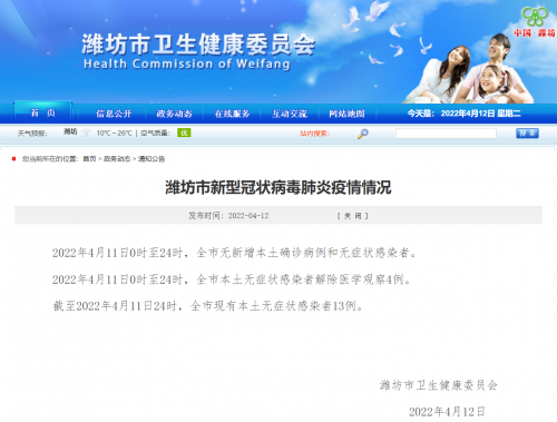 截至2022年4月11日24时,全市现有本土无症状感染者13例。