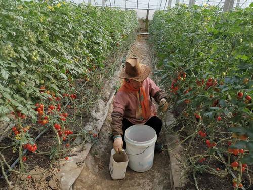 近日,记者来到田柳镇现代农业创新创业园区,跟随工作人员走进A1号冬暖式大棚。“这个大棚长235米,宽15米,最高点6米,种植面积约4.7亩。”园区工作人员梁晓燕介绍,大棚里采用基质栽培,原料为大豆和草炭,种植作物为樱桃番茄,每亩定植数量2000株,病虫害防治采用的是“生物+物理”的防治方法。