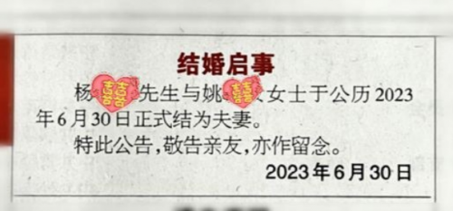 有热心网友甚至将这一操作戏称为“喜来登”,如果你也想把自己与爱人的喜讯刊登在本报上,那么欢迎大家来电“喜来登”,让那份满满的仪式感,留存在那则纸质墨香的启事上。