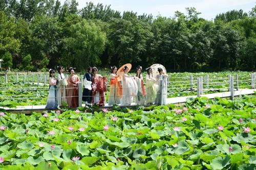 除了千亩荷花,景区内还有天然湿地保护区、东方不沉湖、百果采摘园等自然景点,深受游客青睐。“景区还同步举办了‘最美荷花’摄影大赛、旗袍走秀、汉服表演等活动,并陆续推出老年人生态康养游、青少年军体夏令营及湿地科普研学游、青少年劳动教育实践、自行车有氧骑行游、林海休闲垂钓,以及孩子们喜欢的儿童乐园、恐龙乐园、生肖园、浑水摸鱼等诸多体验性项目,吸引了众多游客前来观赏、打卡。”林海景区相关负责人介绍。