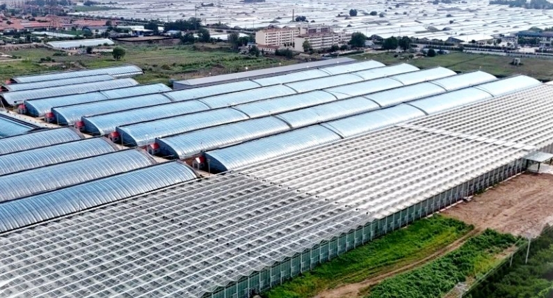 在纪台镇各村的农业生产棚区内,一座座新建大棚正在拔地而起,一片片棚海正在汇线成面,一幅农业蓝海画卷正在绘就,现代农业集群式发展全面起势。