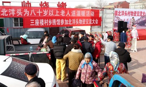 近十多年来,北洋头物资交流会在延续传统物资交流功能的基础上,进一步丰富交流会期间群众的精神文化生活,组织开展了文艺演出、摄影展览、书画展览等活动,把各个口味的文化大餐送到群众家门口。今年的展会,北洋头村还推出了爱心公益行动,现场为130多名80岁以上老人送上了三座楼乡绣馆师傅们手工缝制的非遗民族风棉袄。