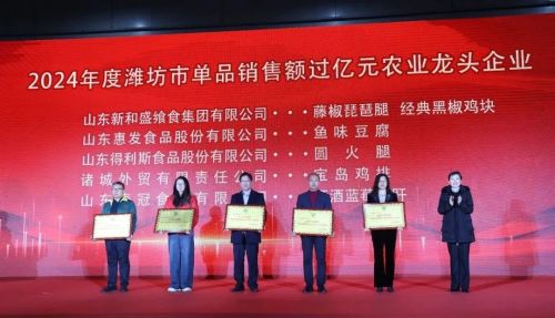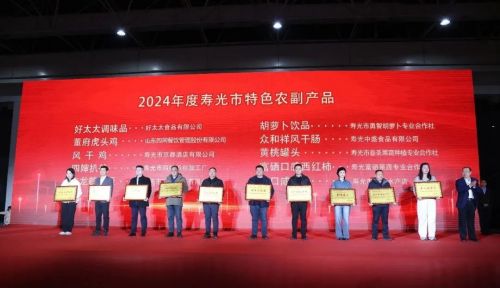 活动现场,为“2024年度寿光市预制菜引领企业”、“2024年度寿光市特色农副产品”、“2024年度寿光市最受欢迎明星单品”、“2024年度潍坊市单品销售额过亿元农业龙头企业”颁奖。