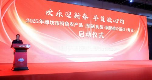 寿光融媒讯 为贯彻落实省委、省政府“促消费·惠民生”决策部署,加快释放消费潜能,为市民营造火热的节庆消费氛围,1月22日,“欢乐迎新春·年货放心购”2025年潍坊市特色农产品(预制食品)展销推介活动(寿光)启动仪式举行。潍坊市委常委、副市长吕珊珊,潍坊市政府副秘书长、潍坊国家农综区推进办专职副主任张守兵,潍坊市农业农村局党组书记、局长刘煜,寿光市领导赵天宝、袁义林、朱永红参加启动仪式。