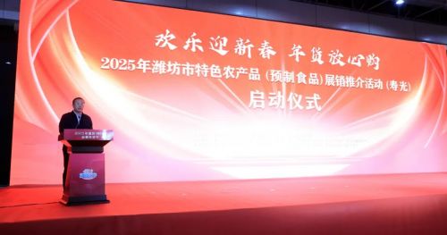 寿光市委副书记、市长赵天宝在致辞中表示,今年,寿光作为全市“欢乐迎新春年货放心购”活动的首发地,在上级部门的指导下,精心筹备本次特色农产品展销推介活动,参展企业达到200余家,展品近2000种,并同步颁发“潍坊市单品销售额过亿元农业龙头企业”“寿光市预制菜引领企业”等奖项,为广大消费者带来一场品牌知名度高、商品种类多、消费环境好的年货盛宴。希望各级各部门抢抓春节消费热点,大力开展形式多样的促消费活动,积极营造欢乐、祥和、多元的新春消费氛围。希望广大参展企业以此次活动为契机,加强产销对接,全力展特色、创品牌、聚人气,促进消费“热”起来,拉动经济“旺”起来。