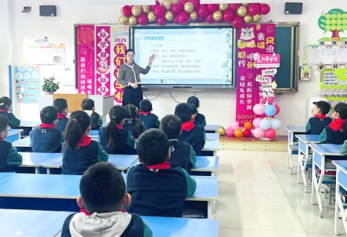 寿光融媒讯(记者 高斌 通讯员 王小微)2月13日,蛇年新春后的开学第一天,寿光各中小学校设计了不同主题的“开学第一课”,通过主题班会、讲座等多种形式,教育引导学生在新的学期以奋斗的姿态,向梦想出发,健康快乐成长。图为凤华小学开展“开学第一课”活动场景,帮助同学们快速调整好返校后的状态。