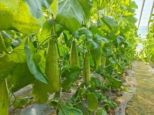 今年,张威试验种植了最新品种的甜瓜——“新蜜77”。大棚内,鲜嫩饱满的小瓜密密麻麻地挂满藤蔓,个头均匀,色泽鲜亮。张威告诉记者,这个新品种的特点是更脆更香,口感好,市场反响好,“还没等成熟,就有客商来棚里抢着预订,价格也令人满意。”