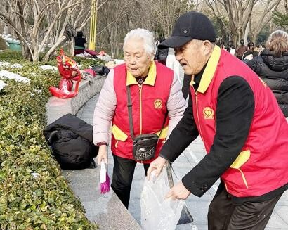 寿光融媒讯(记者袁萍)3月5日一大早,在天平公益志愿者张子新的陪同下,85岁高龄的“中国好人”桑秀文和丈夫周洪三来到仓圣公园雷锋像前,在周边清理卫生,向雷锋塑像敬献花篮。这是每年“雷锋日”前夫妻俩的“规定动作”,今年也不例外。
