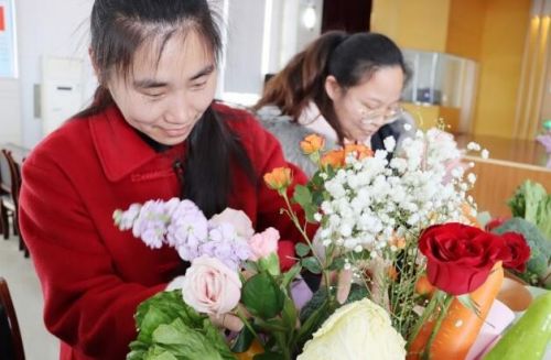 活动现场气氛热烈而温馨,西兰花、圆椒、生菜、胡萝卜等新鲜蔬菜整齐排列,与各式各样的插花工具一同构成了活动的“主角”。在工作人员简单的讲解后,大家纷纷动手制作自己的蔬菜插花作品。“这个西兰花放中间好看吗?”“这样搭配怎么样?”……大家一边探讨插花心得,一边分享生活中的趣事。很快,这些日常烹饪的食材被赋予了新的生命,华丽变身为一件件充满生活气息的艺术品。