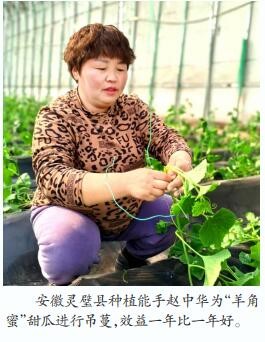 阳光明媚,万物生长。这几天,在安徽省宿州市灵璧县朝阳镇果蔬产业园内,“羊角蜜”甜瓜花开正旺,果农们忙着授粉、吊蔓,孕育着一年的新希望。