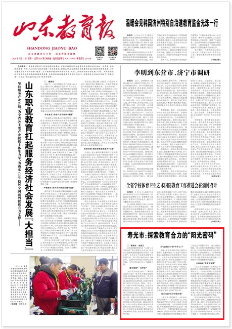 编者按:3月17日,《山东教育报》以《寿光市:探索教育合力的“阳光密码”》为题,推介潍坊寿光市家校共育典型经验做法,现将原文刊发,以飨读者。