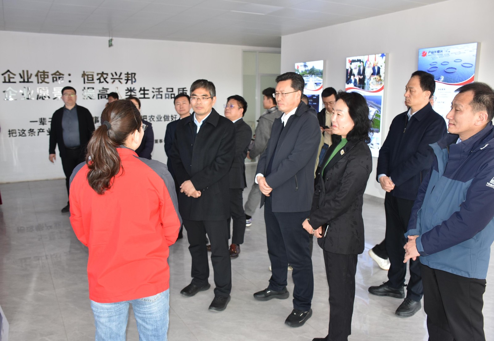 各市渔业技术推广机构负责人实地考察山东恒兴种业有限公司的智能化育苗车间、疫病检测实验室,学习了无规定水生动物疫病苗种场建设经验,深入了解了从亲本选育到苗种培育的全流程标准化管理模式。