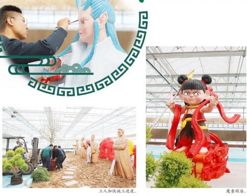 步入春华厅,仿佛踏入了一个神话世界。电影《哪吒之魔童闹海》中的经典角色——脚踏风火轮的哪吒、面容冷峻的敖丙、憨态可掬的太乙真人等,纷纷映入眼帘,银幕上的奇幻故事巧妙地融入现实生活,为游客带来别样的文化体验。对面,“寿光红色文化”景观庄严肃穆、壮观大气,向游客讲述着这片土地上革命先烈们的英勇事迹。马保三、陈少敏、张玉山等英雄人物形象被刻画得栩栩如生,默默诉说着前辈们在革命道路上的浴血奋战故事,激励着后人铭记历史,珍惜来之不易的幸福生活。再往里走,“锣鼓喧天”“舞动中国”等景观,为游客带来浓厚的文化氛围和视觉享受。