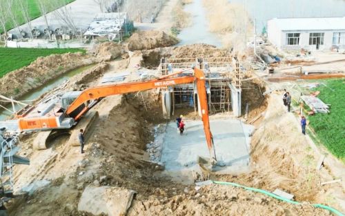 珍果园升级改造项目现场,挖掘机、推土机正紧张作业,伴随着机械前进,工地的平整度和延展度以肉眼可见的速度变化;南邵现代农业产业园区里,挖掘机全面铺开,迅速建设大棚墙体;高标准农田建设项目施工现场,工人们紧密配合,有条不紊地修涵闸 ,一派繁忙……