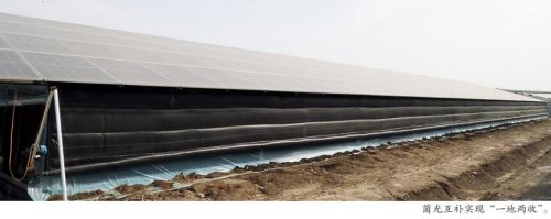 据了解,该基地总投资2000万元,占地55亩,在2至8米高度空间上方架设光伏组件,采取菌光互补方式,利用光伏组件下面的土地空间发展食用菌种植,实现了“棚顶发电、棚下种菇、一地两用、地生多金”。