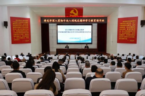 寿光市委常委、组织部部长刘洪科主持辅导报告。寿光市委常委、市纪委书记、市监委主任张敬学作辅导报告,从知内涵,深刻领会中央八项规定精神的核心要义;明时势,准确把握作风建设的成效和问题;辩是非,理清孰可为孰不可为;抓落实,纵深推进作风建设向上向好四个方面作了深入讲解和系统辅导。