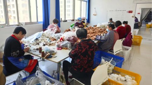 作为目前寿光唯一一家玩偶加工包装企业,其发展历程正是激发乡村产业内生动力的生动写照。公司经理李秀红介绍道:“我们工厂成功盘活了这些沿街闲置房屋,通过对这些资源的利用,设立了建材、充棉、缝纫等车间,玩偶从原料到成品的所有工序都能在这些车间里实现。”