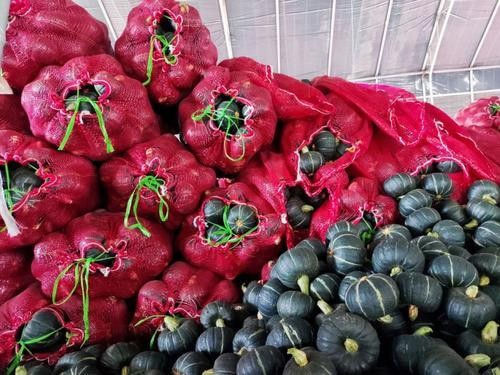 “我们村种南瓜有着20多年的历史,最初是露天种植,品种只有大红南瓜。”村党支部书记刘惠亭说,早期村民种植南瓜靠天吃饭,南瓜品质参差不齐,市场竞争力弱。随着种植技术的提升,村民改用拱棚种植,并引入吊蔓技术,“吊蔓种植能让南瓜充分接受光照,果形更正,口感更软糯。”