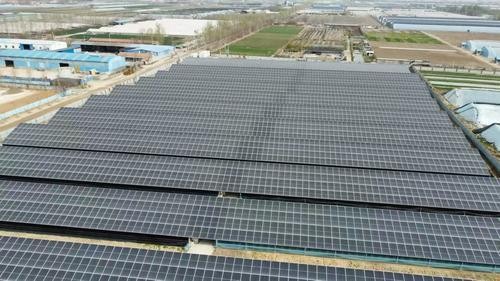 和普通菌菇大棚不同的是,基地内成片太阳能光伏板屹立在菇棚上,组成了巨大的“保护伞”。“不仅防风省地、环保安全,还能提高土地资源利用率,可以说是能源生产和农业生产‘双增收’。”李伟告诉记者,该项目占地55亩,一共是3.5兆瓦的容量,“意思就是这个光伏板满发的时候,每小时能发3500度电。”