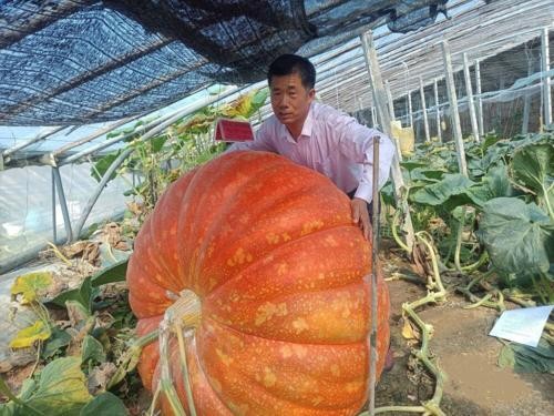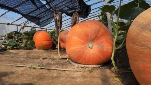 从选种开始,李守太就格外谨慎,专门挑选适合培育大果的品种。之后的施肥、控温、调节湿度等环节,他更是亲自把关,每天都在大棚里待上几个小时,仔细观察南瓜生长情况。“南瓜就像孩子,得细心照料,温度太高不行,湿度太大也不行,得随时调整。”他说。