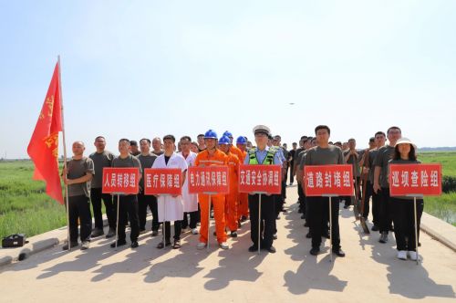 此次演练以台风登陆致弥河水位暴涨为背景,围绕人员集结、巡坝查险、河坝封堵、群众撤离、道路封闭五大核心环节,全流程模拟防汛抢险实战场景。