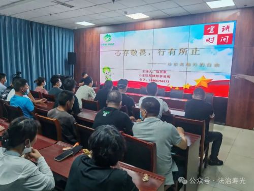 寿光融媒讯 今年是《中华人民共和国社区矫正法》实施五周年,也是《山东省社区矫正工作条例》实施一周年。7月9日,寿光市司法局羊口司法所邀请山东联邦律师事务所郑英豪律师,为全体社区矫正对象开展题为“心存敬畏 行有所止——珍惜高墙外的自由”社区矫正专项教育讲座。