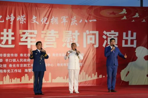 7月28日晚,在“八一”建军节即将到来之际,“军民同心忆峥嵘 文化拥军庆八一”慰问演出活动在羊口海警部队举行。此次活动作为“欢乐基层行 文化润民心”志愿服务进基层系列活动的组成部分,旨在通过文化志愿服务传递党和政府对驻寿部队官兵的关怀,进一步密切军民鱼水深情。