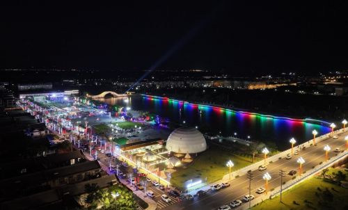 寿光融媒讯(记者张春萍 通讯员段云鹏)在水上乐园戏水踏浪,到海上观光垂钓,去音乐节尽情狂欢……今年以来,羊口镇深度融合文旅商,推出了盛夏消费季系列活动,聚焦当地人文历史元素和特产美食业态,覆盖“食、住、游、购、娱”五大维度,涵盖亲子乐园、游乐场、水上娱乐、美食街区、便民夜市、音乐餐吧、特色餐饮、非遗体验等综合项目,全面激活了文旅消费市场。图为该镇新打造的羊角沟美食娱乐嘉年华项目。