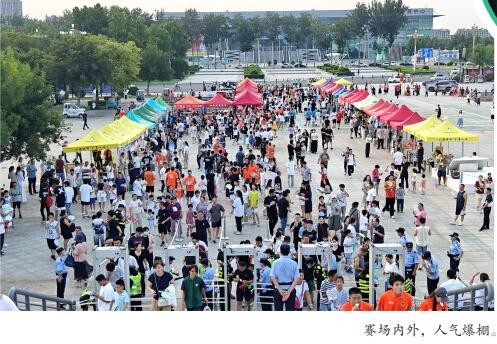 更让刘先生等摊主欣慰的是,赛场外的摊位井然有序:寿光市体育事业发展中心提前划好了摊位区域,统一登记商户信息,还安排了志愿者维持秩序,“不用抢位置,不怕乱收费,安心赚钱就行。”刘先生身后的摊位区有近百个帐篷,排列整齐,干净卫生“,这优越的环境,做生意都舒心!”