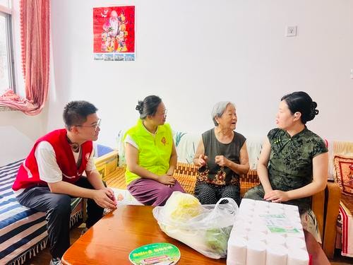 这是向阳社区“叮咚上门”助老服务项目的实施场景。据了解,该活动每月一次,由社区联合爱心企业、大学生志愿者等服务人员,为高龄、独居老人提供“蔬菜包”配送、义剪义诊、康养保健等贴心服务。