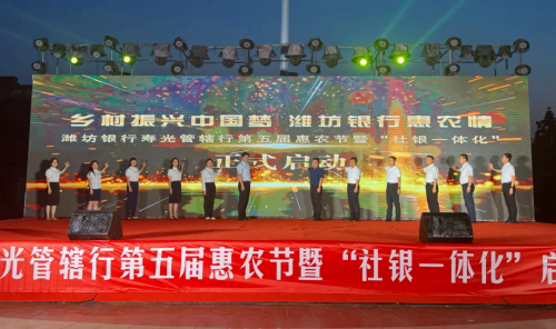 寿光融媒讯(记者 魏平 刘兴祥 郝娜 侯增梅)8月12日,“乡村振兴中国梦•潍坊银行惠农情”潍坊银行寿光管辖行第五届惠农节暨“社银一体化”启动仪式在文家街道举行。潍坊银行股份有限公司党委副书记、行长马杰,寿光市委副书记、市长赵天宝分别致辞,寿光市领导张其振、刘保生出席活动。