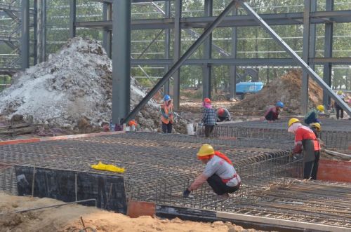 寿光融媒讯 初秋时节,暑气犹盛,位于洛城街道的潍坊柳桥商羽羽绒深加工项目建设现场一派繁忙景象。机器轰鸣声中,多台大型设备协同作业,施工人员分工明确,有的正在进行厂房主体钢结构安装,有的在浇筑地基,还有的在进行办公楼内部装修……各环节正按照既定节点有序推进。