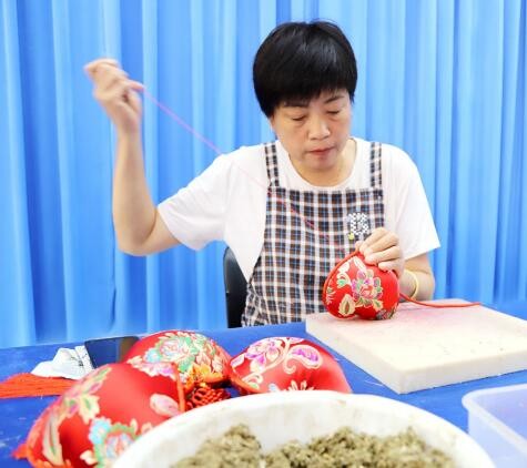 寿光融媒讯(记者王秀慧)近日,在台头镇北孙村香包产业电商基地,200余名中老年人和闲暇妇女在此从事绣艺工作,人均月增收3000余元。
