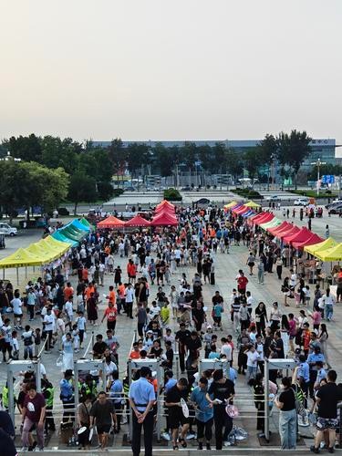 数百米长的摊位区如彩色丝带般沿体育场外围延展,“文明”二字如清风般悄然浸润集市的每个角落。每次主场赛事前,身着醒目红衣的志愿者都会穿梭在每个角落,为球迷提供各种贴心服务,包括领跑、引路、捡拾垃圾等,用实际行动诠释文明的内涵。对此,带儿子看球赛的市民张明深有感触:“赛场内外环境清爽,服务贴心,孩子们玩得尽兴,大人也格外安心。”