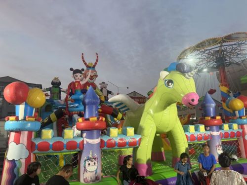 除了美食的醇香让人沉醉,此次稻田镇2025年民俗文化艺术节上的游乐设施更是为现场增添了无尽欢趣,孩子们自由穿梭、嬉笑玩闹,脸上洋溢着灿烂的笑容,欢声笑语在田马市场的上空久久回荡。