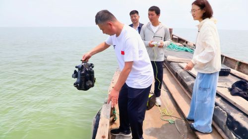 寿光融媒讯 近日,潍坊寿光市审计局在开展海洋生态保护修复项目建设情况审计项目时,引入无人潜艇搭载多波束测深仪、侧扫声呐等设备对海底进行高精度地形测绘,测量牡蛎礁斑块面积、礁体高度、礁区宽度,审查人工牡蛎礁体是否投放于适宜的区域,根据监测数据评估牡蛎礁修复工程的效果,分析是否提高生物多样性、改善水质、增强减灾功能等预期生态修复目标,让每分修复资金“掷海有声”。图为审计人员对无人潜艇进行投放。