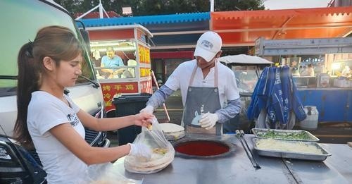 苏比努尔表示,刚到寿光时,各方面确实有些不适应。这里的气候闷热湿润,与新疆干燥的气候有很大不同;饮食方面也有很大差异,很多食物的口味和做法都让她感到陌生,更“吃不习惯”。然而,寿光人民的热情好客就像一束光,照亮了她在异乡的生活,让她逐渐克服了这些困难。在夜市摆摊的日子里,苏比努尔结识了许多当地人。“家里人都喜欢吃这个馕,我每次都买好几个。”住在附近小区的王大爷是兄妹俩的老顾客,老人朴实的话语让苏比努尔心里暖暖的。还有几个大学生“闻”着馕的香味而来。“好香呀!同学推荐过来的,今天来买点尝尝。”他们边夸边和苏比努尔交流。每每此时,她总是微笑着耐心回应:“在寿光,我感受到了‘家’的温暖”。